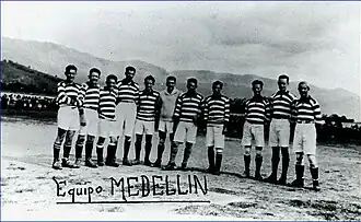 Independiente Medellín was founded on 14 November 1913 under the name of Medellín Foot Ball Club by siblings Alberto, Luis, and Rafael Uribe Piedrahíta.[7] The team played its first match against Sporting Medellín, who defeated them 11–0.