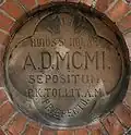 The date stone on the boundary wall adjoining King Street outside 'B'-Block reads: "In usum huius scholae A.D. MCMI sepositum P.K. Tollit A.M. Praefecto".