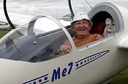 In addition he had success as a competition glider pilot winning three regional championships, was the UK National aerobatic glider champion in 1961, and set several national gliding records including the single-seat altitude record of over 25,000 feet (7,600 m) in an active thunderstorm in a Slingsby Skylark. He holds the FAI Diamond Badge. In 2003 at the age of 81, he completed a 505 km (314 mi) task in a Fedorov Me7 Mechta glider with only a 12.7 m (42 ft) span in a national competition in a time of 7hr 14min. (Several much younger pilots with superior machines failed to complete this task). He ceased regularly flying gliders solo in December 2012 but had one last Hurrah in an EoN Baby at Lyveden in August 2013, and ceased holding a Private Pilot Licence (PPL).