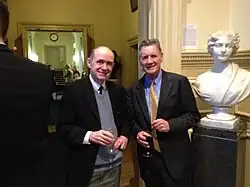 World tour as a chorister with the 40-voice Auckland University Festival Choir,[40][41] conducted by Professor Peter Godfrey, a King's College, Cambridge alumnus and founder of the New Zealand Choral Federation and the Symphonia of Auckland.[42] During the 3rd International University Choral Festival, at the United Nations, the choir participated in a massed chorus of 16 international choirs conducted by Willi Gohl,[43][44] followed by a concert of 640 voices on 30 April 1972 at the Lincoln Center for the Performing Arts[45] New York under Robert Shaw.[46][47] During the US tour, the choir also performed at the John F. Kennedy Center for the Performing Arts and at a White House reception with the First Lady, Pat Nixon,[20][48] on the eve of the breaking of the Watergate scandal. In the United Kingdom, the Festival Choir performed at Westminster Abbey and at King's College, Cambridge in a joint concert with King's College Choir with Sir David Willcocks. They were met by composer Benjamin Britten and tenor Peter Pears for the choir's recital at the Snape Maltings[49]: 33 [50][51] and the choir won praise[52] for its performances in the Netherlands, Germany, Switzerland and Singapore. In 1998, there was a CD re-release[53] of its LP, recorded straight after the world tour.[54] Lauded as the "best choir New Zealand has produced",[55] Godfrey's Festival Choir continued to hold decennial reunions until his death in 2017.[56]