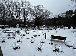 The Desert of Maine has been privately owned and maintained as a tourist attraction since 1925, with the most recent change in ownership in 2018 followed by a redevelopment campaign launched in 2020.[17] This included excavating a house, built in 1938, that had become buried in sand during the park's closure in World War II. The town of Freeport has supported the development of the site, authorizing a special zoning district to enable the construction of new facilities and to keep the site intact and maintained.[18][17] As of 2022, the site hosts a campground, rental cabins, a performing arts venue, and a miniature golf course. It also includes attractions that draw on the desert and its history, such as interpretive trails across the sand, historical buildings, and an original Ford Model T to commemorate the year of the site's opening as a tourist destination.[19]