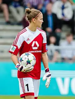In April 2011 she announced her transfer to FFC Frankfurt.[2] For Frankfurt, she played in the 2012 Champions League final, her first Champions League final having sat on the bench as a substitute in 2011 and 2010 while playing for Potsdam.[3][4]
