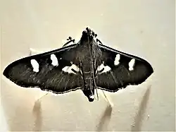 Desmia tages is a moth in the family Crambidae. It was described by Pieter Cramer in 1777. It is found in Cuba,[1] Jamaica, Puerto Rico, Florida,[2] Costa Rica, and Mexico.[3]