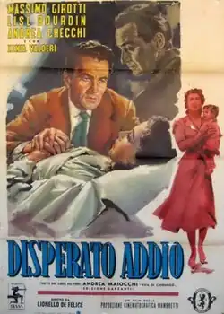 Desperate Farewell (Italian: Disperato addio) is a 1955 Italian melodrama film directed by Lionello De Felice and starring Massimo Girotti, Lise Bourdin and Andrea Checchi.[1] It is a medical drama based on a novel by Andrea Majocchi.