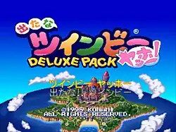 Detana TwinBee Yahho! Deluxe Pack[a] is a 1995 two-in-one video game compilation developed and published by Konami for the PlayStation and Sega Saturn. It is the second Deluxe Pack release following Gokujō Parodius Da! Deluxe Pack, which included both Parodius Da! (1990) and Gokujo Parodius (1994).[1] Part of the TwinBee series, it includes the original arcade versions of both Detana!! TwinBee and TwinBee Yahho!.[2] In both games, players assume the role of Light and Pastel taking control of TwinBee and WinBee to defeat invading forces of the evil alien Iva and Archduke Nonsense to save planet Meru and the Land of Wonders island after receiving an SOS message sent by princess Melora and Queen Melody.