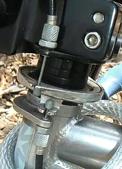 A detangler is usually only used for the rear brake cable. The front brake cable can be routed through the stem, via a hollow stem bolt known as a Pott's mod bolt,[3] and fork steer tube to avoid the tangling problem.