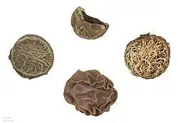 Detarium senegalese is a medium-sized tree that may grow up to 40 m tall.[5] Like many trees in the Detarioideae, they have thick, irregularly placed branches. The trunks of mature trees typically range from 60–100 cm in diameter.[6] The fruit is a globular, dark green drupe with fibrous pulp and a single seed.[7] They are similar to the fruits of the tamarind, which belongs to Tamarindus, another genus in the subfamily Detarioideae.[8] The sweet and sour flavour of the fruit is popular and the shelf life is good because of the hard shell and dry pulp.[9] To establish the tree more widely as an agricultural line, some genetic work is required; for example some of the trees produce toxic fruits and there is currently no method of differentiating them from trees that grow desirable fruit.[10]