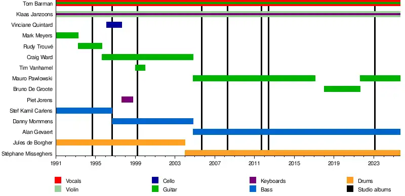 In October 2016, they announced through Facebook that Mauro Pawlowski would leave the band after a final concert in Antwerp the following February, then on 6 February 2018, they announced through Facebook that Bruno De Groote will be the new guitar player of the band.[16]