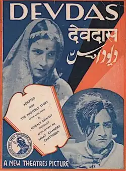 Devdas is a 1936 Hindi-language Indian drama romance film based on the Sharat Chandra Chattopadhyay novella, Devdas.[1][2] Directed by Pramathesh Barua, it stars K.L. Saigal as Devdas, Jamuna Barua as Parvati (Paro) and Rajkumari as Chandramukhi. This was Barua's second of three language versions, the first being in Bengali and the third in Assamese.
