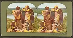 Devil's Lake has enjoyed a history of rock climbing since early ascents in the 20th century. Climbers such as the Stettner Brothers, and members of the hard-climbing group "DLFA"[20] have frequented the park extensively. Guidebooks cover more than a lifetime's worth of unique "routes" and sub-areas of the park.[21] For climbers, unique names for each major bluff formation is important in finding specific climbs and areas. The climbing style and protection system at Devil's Lake is known for its difficult, glassy rock and traditional fall-protection methods and anchors.[21]