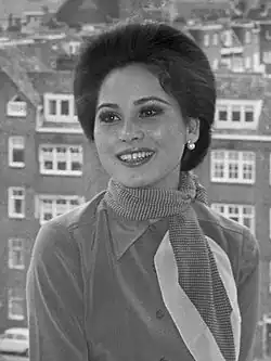 Ratna Sari Dewi Sukarno (ラトナ サリ デヴィ スカルノ, Ratona Sari Devi Sukaruno; born Naoko Nemoto (根本 七保子, Nemoto Naoko); February 6, 1940), widely known in Japan as Dewi Fujin (デヴィ夫人, Devi Fujin; literally Lady Dewi or Madame Dewi) is a Japanese businesswoman, socialite, and television personality. She was one of the wives of the first President of Indonesia, Sukarno.