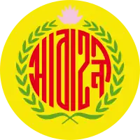 Abahani (Bengali: আবাহনী), means incoming message, sound or music, and thus, one of the club's founding member Harunur Rashid designed the club's crest after being influenced by the Flag of the United Nations. Similar to the United Nations flag, Abahani's crest has flowers on both sides. Regarding the design, Rahid said "The flag of the United Nations is blue, we take that color from there and to make it bloom better, I wrote Abahani below with yellow paint."[9]
