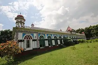The early history of this later Nawab dynasty of Dhanbari was documented in a waqfnama (deed of endowment) written by Nawab Ali Chowdhury. This family claim descent from Shah Atiqullah, a Muslim preacher from Baghdad, who had migrated to Delhi in the Mughal period. The document claims that Atiqullah was descended from both Abdul Qadir Gilani (a direct descendant of Ali, the fourth Caliph of Islam) as well as the Persian scholar Abu Hanifa.[1] It is argued by the British-Bangladeshi historian Muhammad Mojlum Khan that "there is no conclusive evidence" of the family's descent from Shah Atiqullah.[2] Nevertheless, from among Atiqullah's descendants was Shah Sultan who was awarded jagirs from the Mughal emperor, settling down in the village of Nakalia in Pabna. As a result of the Jamuna river erosion, Sultan's offspring moved to the village of Hasmelan in Harirampur, Manikganj.[3]