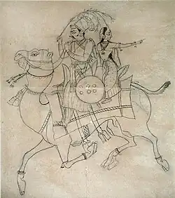 ![]() Painting depicting Dhola and Maru on a camel | |