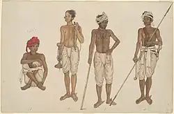 | a In Marathi, a dhotar is not the same as a pancha (plural panche). While the former is worn around the waist, the latter is normally a towel used after bathing (compare below). | ||