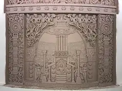 The statue has a three-layered museum in the base underneath it, which consists of sculptures of Amaravati art depicting scenes with Buddhist significance, most modern copies of the original reliefs from the Amaravati Mahachaitya stupa which are now in museums around India and the world.