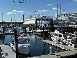 DiMillo's On the Water is a floating restaurant in Portland, Maine, United States. It is located on the former New York car ferry,[1] which ran between Norfolk and Hampton, Virginia, then between Newport and Jamestown, Rhode Island.[2] It is now permanently berthed at Portland's Long Wharf.[3] The vessel is 206 feet (63 m) long, 65 feet (20 m) wide, and weighs 700 tons.[4] The DiMillo family also owns the marina that surrounds the vessel.[2]