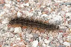 Larva dark brown, with foxy red hairs, light dorsal line spotted with red, and white stigmata. The larvae feed on various shrubs and herbaceous plants. Species in the genera Galium, Plantago, Taraxacum, Epilobium and Urtica.