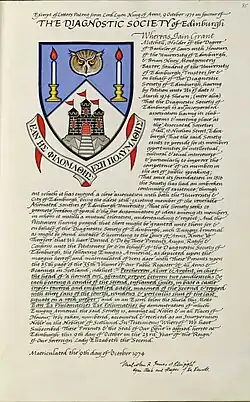 The Diagnostics Society of Edinburgh was granted an official coat of arms in 1974.