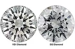 - Slightly Included category (SI) diamonds have noticeable inclusions that are easy, or very easy for a trained grader to see when viewed under 10× magnification.[3] The SI category is divided into two grades; SI1 denotes a higher clarity grade than SI2. These may or may not be noticeable to the naked eye.[4]