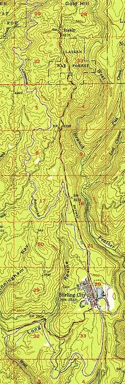 Logging railway north of Stirling City, California with Southern Pacific connection to the south