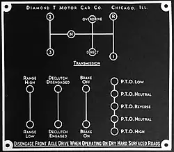 A 5-speed manual transmission with a very low 1st and an overdrive 5th gear was used. A transfer case had a high and low range, a neutral for power take-off operation, and engaged the front axle. Axles were Timken double reduction “pumpkin” type.[10]