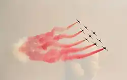 As few as four aircraft can establish the formation and conventionally the largest number is sixteen, in "tight formation": 1, 2, 3, 4, 3, 2, 1. Rarely attempted on jet aircraft, this feat was first achieved by the Pakistan Air Force flying U.S.-made F-86 Sabres in February 1958. It is considered a difficult formation as the aircraft have to fly very close to one another to create the desired effect. The larger the number of aircraft involved, the higher the risk, as compared to other formations.
