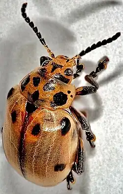 - ^ Chaboo CS, Grobbelaar E, Larsen A, Fecal Ecology in Leaf Beetles: Novel Records in the African Arrow-Poison Beetles, Diamphidia Gerstaecker and Polyclada Chevrolat (Chrysomelidae: Galerucinae) (2007) The Coleopterists Bulletin: Vol. 61, No. 2 pp. 297–309