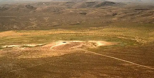 Diana's Punchbowl, also called the Devil's Cauldron, is a geothermal feature located on a small fault in Nye County, Nevada. The spring is exposed through a cup-shaped depression about 50 feet (15 m) in diameter at the top of a domelike hill of travertine about 600 feet (180 m) in diameter. Hot water in the pool of the bowl is about 30 feet (9 m) below the rim.[1]