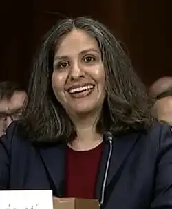 On January 3, 2019, her nomination was returned to the President under Rule XXXI, Paragraph 6 of the Senate.[8] On April 8, 2019, President Trump announced the renomination of Gujarati to the district court.[9] On May 21, 2019, her nomination was sent to the Senate, she was renominated to the same seat.[10] On June 20, 2019, her nomination was reported out of committee by voice vote.[11] On September 9, 2020, the Senate invoked cloture on her nomination by a 94–2 vote.[12] On September 10, 2020, her nomination was confirmed by a 99–0 vote, with Senator Kamala Harris, who was on the campaign trail for her vice-presidential bid as the Democratic nominee, being the only Senator not to vote.[13] She received her judicial commission on September 18, 2020.[14] Upon taking office, Gujarati became the first Indian American to serve as an Article III federal judge in New York.[15]