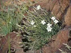 Dianthus acicularis is a species of pink in the carnation family mostly found in the Urals region; eastern European Russia and western Siberia, with some occurrences in Kazakhstan, and Xinjiang in China.[2] A diploid, its resistance to bacterial wilt of carnation and ease of cell line propagation in the laboratory make it useful for breeding ornamental carnations for the cut flower industry.[3]