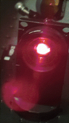 A 750nm titanium-sapphire laser beam passing through an iris diaphragm, while opening and closing the iris. Note changes in beam diameter observed on the downstream golden mirror.