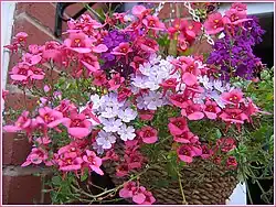 Diascia cultivars have become extremely popular worldwide as bedding plants, suitable for hanging baskets, window boxes and other containers, as well as rockeries and the fronts of herbaceous borders. This explosion of interest is largely thanks to the breeding work done by the late Hector Harrison of Appleby, North Lincolnshire, England. From 1985, he raised hundreds of hybrid seedlings, from which several excellent cultivars have been selected and named. He increased the colour range to include shades of apricot, pink, coral, lilac, red and white. Other nurseries and breeders have continued to build on his pioneering work.[6]