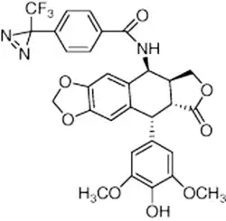 - ^ Chee, Gaik-Lean; Yalowich, Jack C.; Bodner, Andrew; Wu, Xing; Hasinoff, Brian B. (2010-01-15). "A diazirine-based photoaffinity etoposide probe for labeling topoisomerase II". Bioorganic & Medicinal Chemistry. 18 (2): 830–838. doi:10.1016/j.bmc.2009.11.048. PMC 2818565. PMID 20006518.