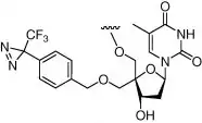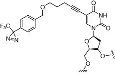- Incorporation of a diazirine moiety on a nucleoside sugar in a DNA polymer to investigate interactions between the minor groove of DNA and DNA polymerases.[32]