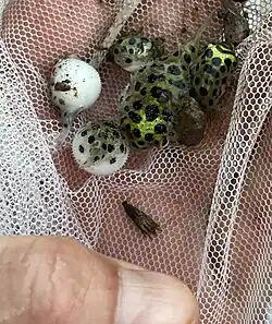 Dichotomyctere nigroviridis (syn. Tetraodon nigroviridis) or the green spotted puffer is a species of pufferfish. It is found across South and Southeast Asia in coastal freshwater, but survives the longest in brackish to saltwater, and brackish water habitats.[2] D. nigroviridis reaches a typical maximum length of about 15 cm (6 in) (5.9 in), with reports of up to 17 cm (6.7 in).[3] In February 2009, it was successfully bred in captivity at University of Florida using a new variation of the ovarian lavage technique.[4]