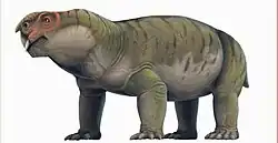 Dicynodonts first appeared during the Middle Permian in the Southern Hemisphere, with South Africa being the centre of their known diversity, and underwent a rapid evolutionary radiation, becoming globally distributed and amongst the most successful and abundant land vertebrates during the Late Permian.[20][21] During this time, they included a large variety of ecotypes, including large, medium-sized, and small herbivores and short-limbed mole-like burrowers.[22]