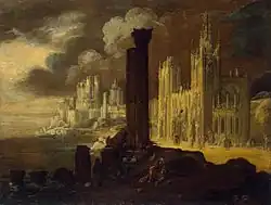 Not much is known about Barra's life except through his works. He was born in Metz, but left for Italy in 1608. In Naples, he was very successful, especially for his cityscapes. He primarily painted scenes featuring decrepit ruins or near-barren buildings in a nearly-surrealist, apparently post-apocalyptic landscape. Until the mid-twentieth century, Barra's works were believed to be by one "Monsù Desiderio". However, the works formerly attributed to Desiderio have since been identified as the work of at least three artists: Barra, François de Nomé, who was also from Metz, and a third, as yet unnamed painter.[1] The similarities in both themes and style, and the fact that there were occasions where Barra and de Nomé collaborated, have made attributions challenging. One work executed by Barra Saint Standing in a Niche is part of the Courtauld Gallery collection.[2] He died in Naples in 1656.