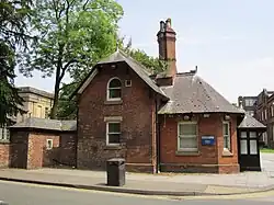 This building is situated near to the Old Chapel on the edge of the campus, and was constructed in the 1870s as a gatehouse. As an associated building to the grander college building, it is considered to be curtilage listed.[98] In modern times it housed security and is due to be developed as a private property.[60]