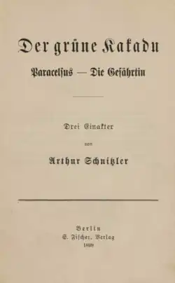- Arthur Schnitzler: Der grüne Kakadu – Paracelsus – Die Gefährtin. S. Fischer Berlin 1899.