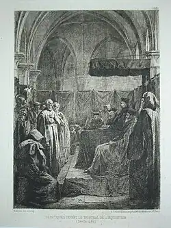 Heretics before the 1481 tribunal in Seville (drawn in 1870)