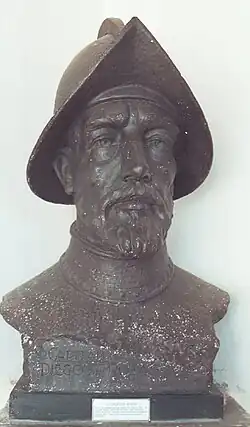 Born 1500 in Burgos.[2] Since arriving in America, Roxas was in charge of dangerous missions of explorations the rivers, in the border of Guatemala and Mexico, Roxas was accompanied by Aborigines of the area.[3] Then he participated in the conquest of El Salvador.[4] In 1536, the Conquistador Diego de Roxas, came to Peru, one of his first missions were under the orders of Governor Cristóbal Vaca de Castro, he demanded the exploration of land south of the region. In 1538 Roxas was Governor of the Province of Charcas, and is designated by Francisco Pizarro, for on a mission of exploration in the Gran Chaco.[5] In 1543 Diego de Roxas, discovered what is now the Ciudad de Córdoba.[6] Roxas participated in the wars against the fearsome tribe Calchaquíes,[7] while he was exploring the puna jujeña, Roxas was murdered in a brawl, which occurred in Santiago del Estero.[8]
