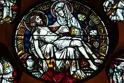 - Pietà. One of the Michael trumpeters has been mortally wounded. Eve (soprano) appears and sits down, cradling the dying trumpeter in her lap in a pose resembling the portrayal of Christ in the lap of his mother Mary in many paintings and sculptures titled Pietà. The trumpeter's soul rises out of his body and stands, very tall, behind Eve and plays a quarter-tone flugelhorn in a duet with her.