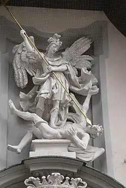 Dienstag is an opera for 17 solo performers (three singers, 10 instrumentalists, 4 dancer-mimes), actors, mimes, choir, orchestra, and electronic music. Tuesday is the red day of conflict between Michael and Lucifer.[1]