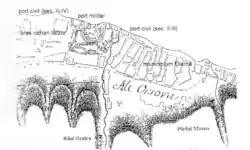 The Roman city is today 6 m beneath the Danube after the Iron Gates Dam raised the water level.[4] Drawings from the 18th century show that Roman Dierna had a military port near the fort and an extensive civil port along the banks of the Danube. The Roman settlement at the confluence of the river Cerna with the Danube developed as a result of the port that was established here probably in the Flavian dynasty when the two fleets that controlled river navigation were created: Classis Flavia Pannonica and Classis Flavia Moesica.[5][6]