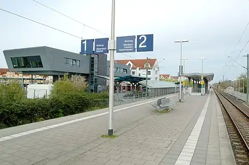 As part of the expansion to the S-Bahn, the station was rebuilt on the existing line. The station is especially popular for commuters from the district of Offenbach, as it is located near the administration of Offenbach district and at a large bus interchange. The so-called Rathaus-Center (town hall centre) is located about 500 metres from the station.