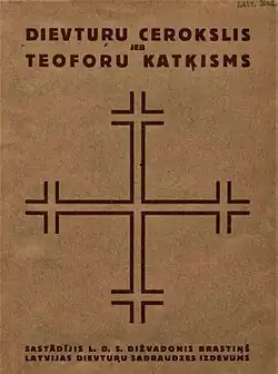- Brastiņš, Ernests (1932). Dievtur̦u cerokslis [Dievturi Catechism] (in Latvian). Riga: Latvijas dievtur̦u sadraudzes izdevums.