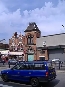 One of Digbeth's most recognisable buildings, the former Bonser & Co. warehouse at 85 Digbeth, was built around 1860. It was built for the Bonser & Co. firm of iron merchants and consists of a short entrance tower fronting onto Digbeth High Street. The tower, being small, was designed to take up as little shop frontage space on the street as possible but also to break the monotony of the small buildings around it. On the ground floor is a semi-circular arch and a segmental arch on the first floor. In the pitched roof is a slight upward curve.[12]