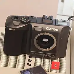 In 1986, the Kodak Microelectronics Technology Division developed a 1.3 MP CCD image sensor, the first with more than 1 million pixels. In 1987, this sensor was integrated with a Canon F-1 film SLR body at the Kodak Federal Systems Division to create an early DSLR camera.[9] The digital back monitored the camera body battery current to sync the image sensor exposure to the film body shutter.[10][11] Digital images were stored on a tethered hard drive and processed for histogram feedback to the user. This camera was created for the U.S. government, and was followed by several other models intended for government use and eventually Kodak DCS, a commercial DSLR series launched in 1991.[12][13][14]
