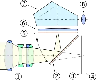 The photographer can see the subject in the mirror before taking an image. When taking an image the mirror will swing up and light will go to the sensor instead.